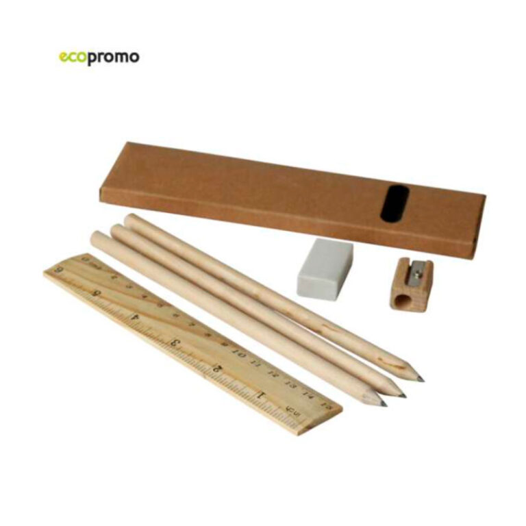 Ver producto >reciclable. Incluye tres lápices, regla de 15 cm, lápiz y borrador. Medidas: 17,7 cm x...