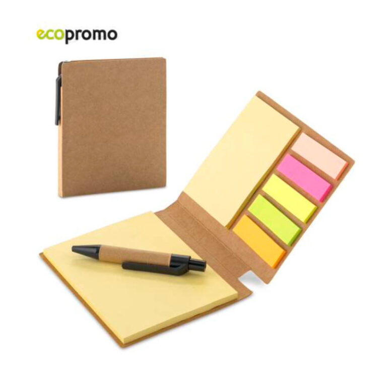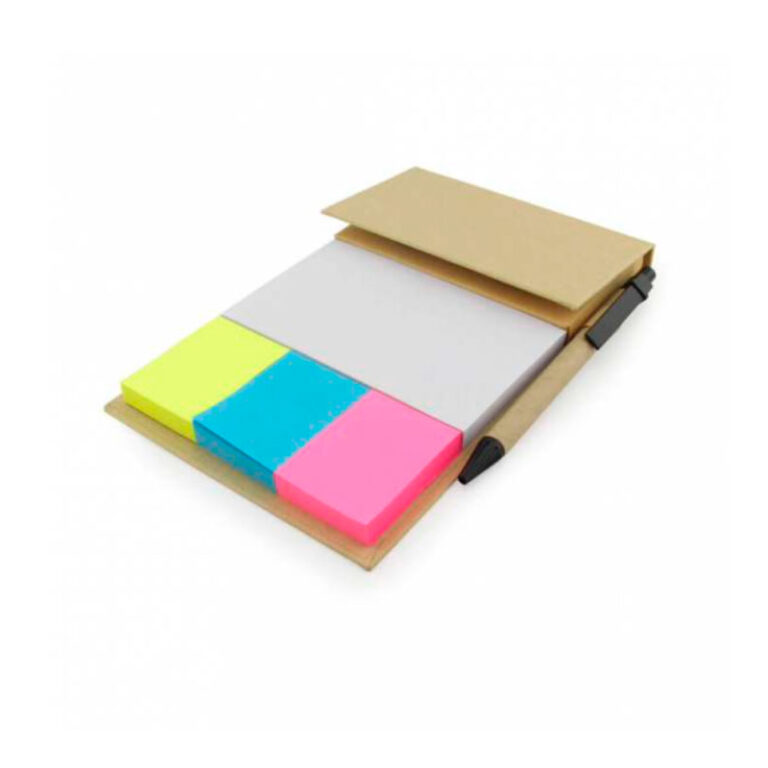 Ver producto >Libreta con cinco stickers de colores, tacos de papel autoadhesivo y bolígrafo. Medidas: Abierto: 12...